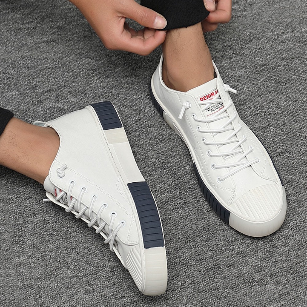 Men's Leather Board Shoes Trendy White Casual Shoes