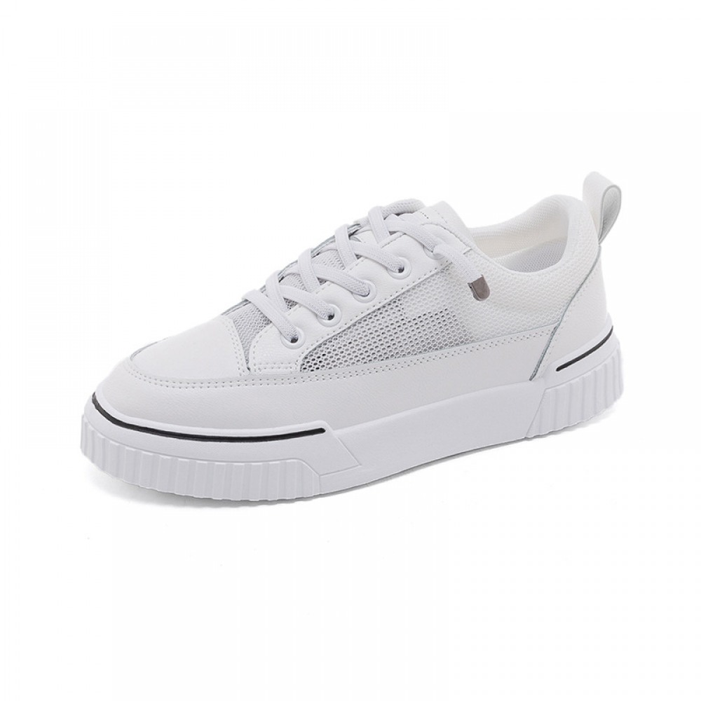 White Shoes Female New Breathable Student Board Shoes Female Flat-Bottom Lace-Up Casual Shoes