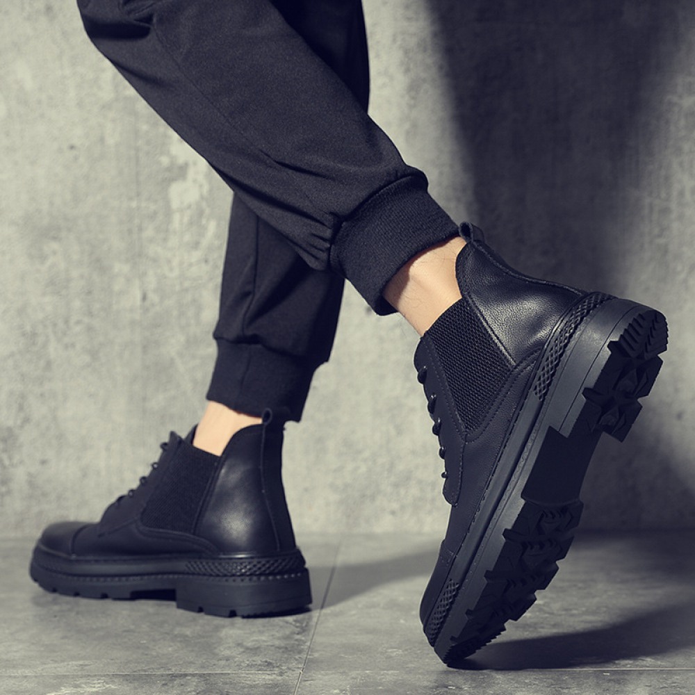 Martin Boots Men's British Style Tooling Boots Mens Autumn Trend High-Top Shoes Casual Breathable Short Boots