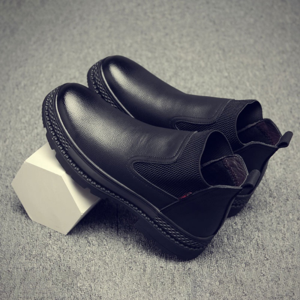 Autumn New Leather Men's Leather Boots Front Lace-Up Low-Heel Martin Boots Mens Shoes