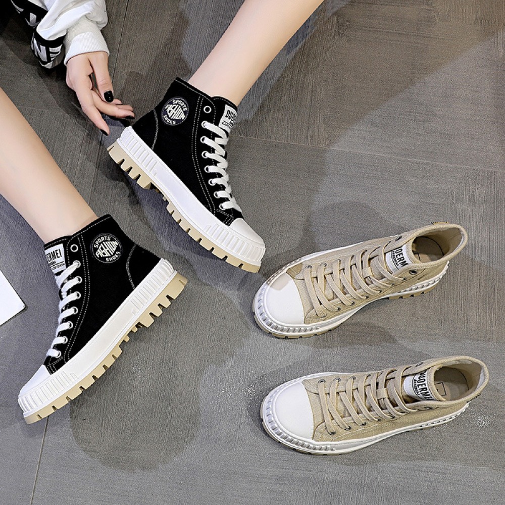 New Canvas Shoes Women's Trendy Shoes High-Top College Style Flat Casual Boots Sports Thick-Soled Trendy Sneakers