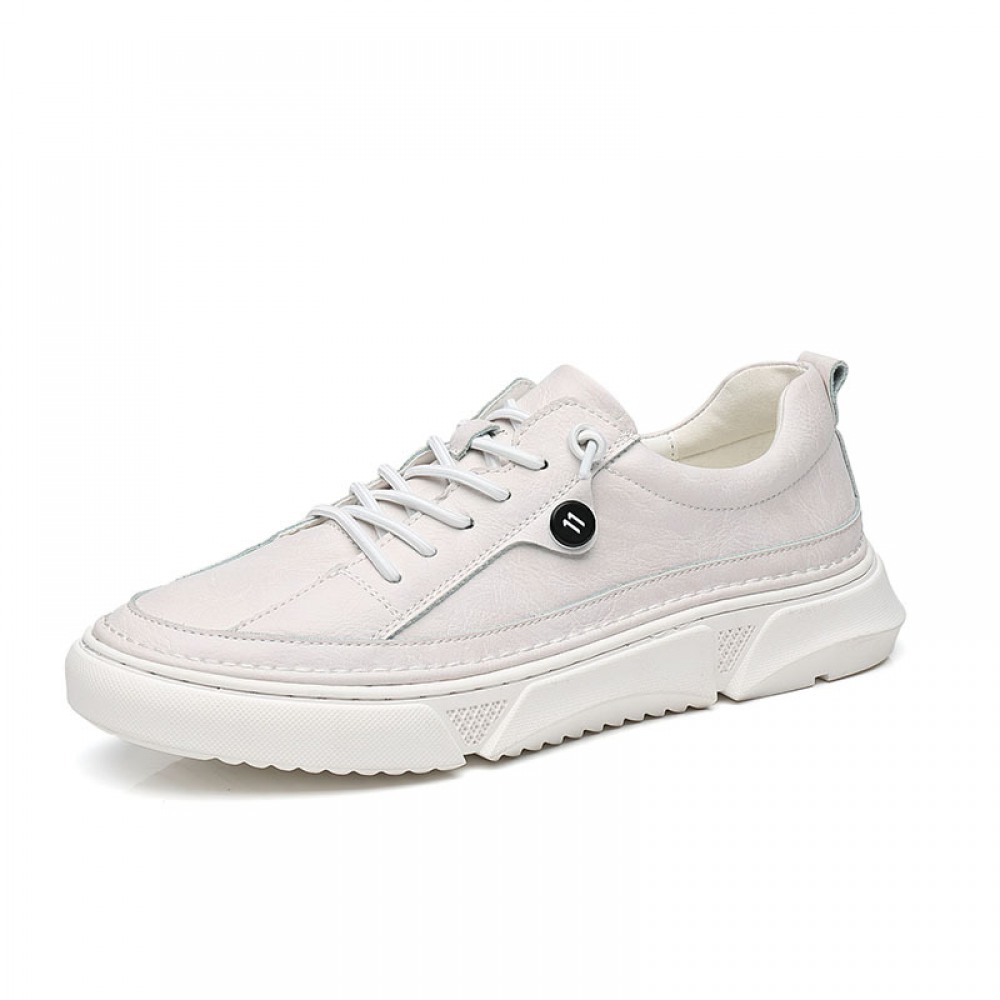 Men's Leather Board Shoes Trendy White Casual Shoes
