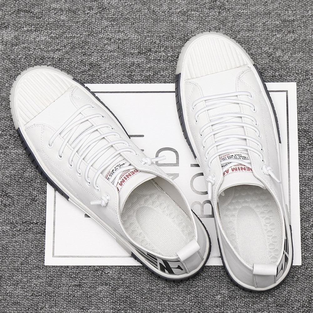 Men's Leather Board Shoes Trendy White Casual Shoes