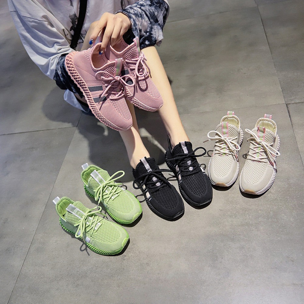 Summer and Autumn New Sports Shoes Female Flying Woven Student Running Shoes Breathable Socks Shoes Women